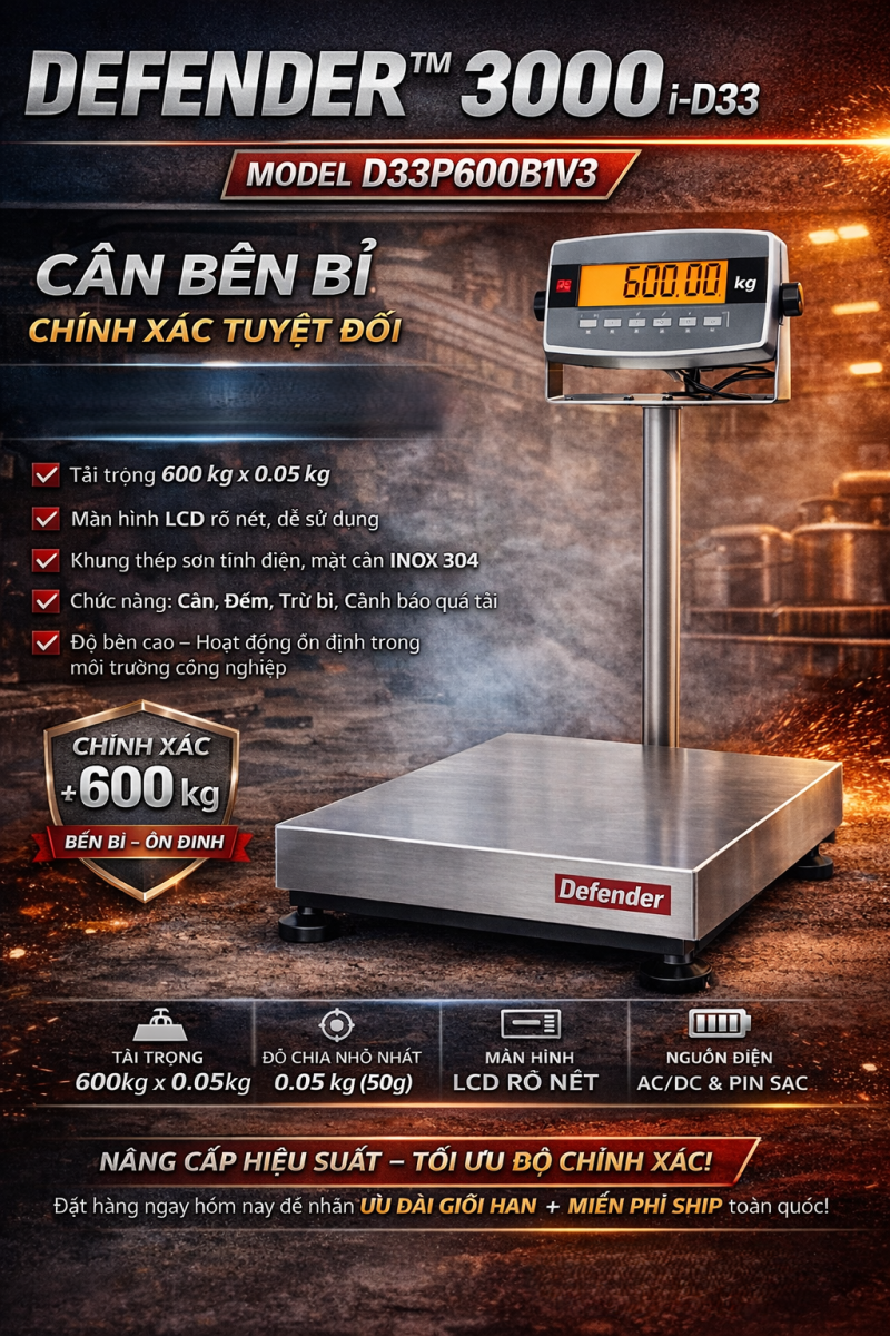 - Khả năng cân: 600kg ± 0.05kg